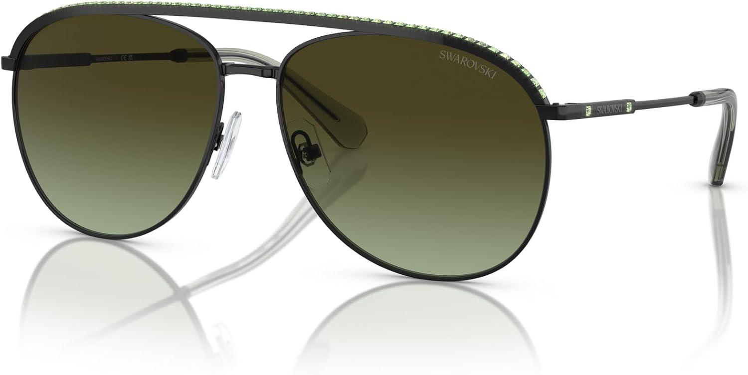 Swarovski Women’s Sk7005 Aviator Sunglasses(Black/Green Gradient Brown)