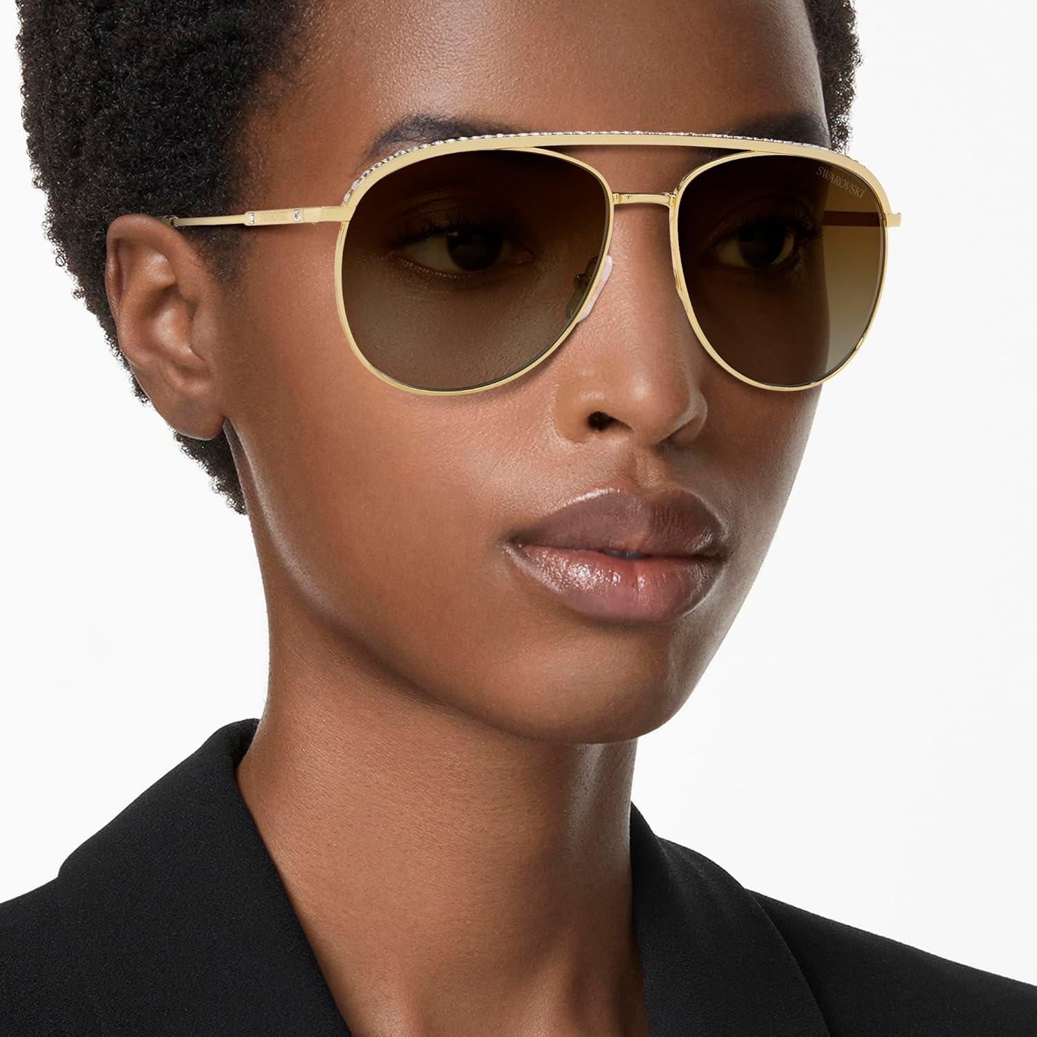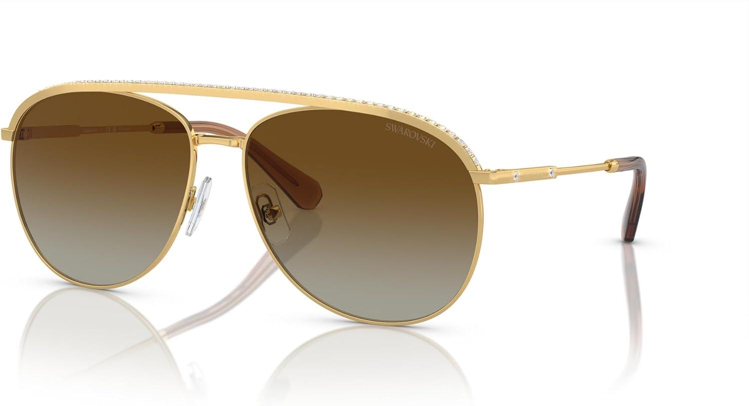 Swarovski Women’s Sk7005 Aviator Sunglasses(Gold/Polarized Gradient Brown)