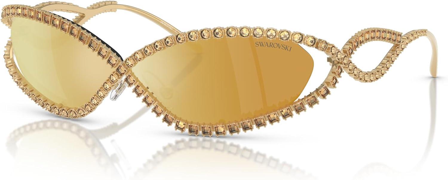 Swarovski womens Sk7024 Oval Sunglasses(Gold/Brown Mirrored Gold)