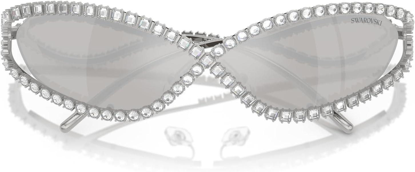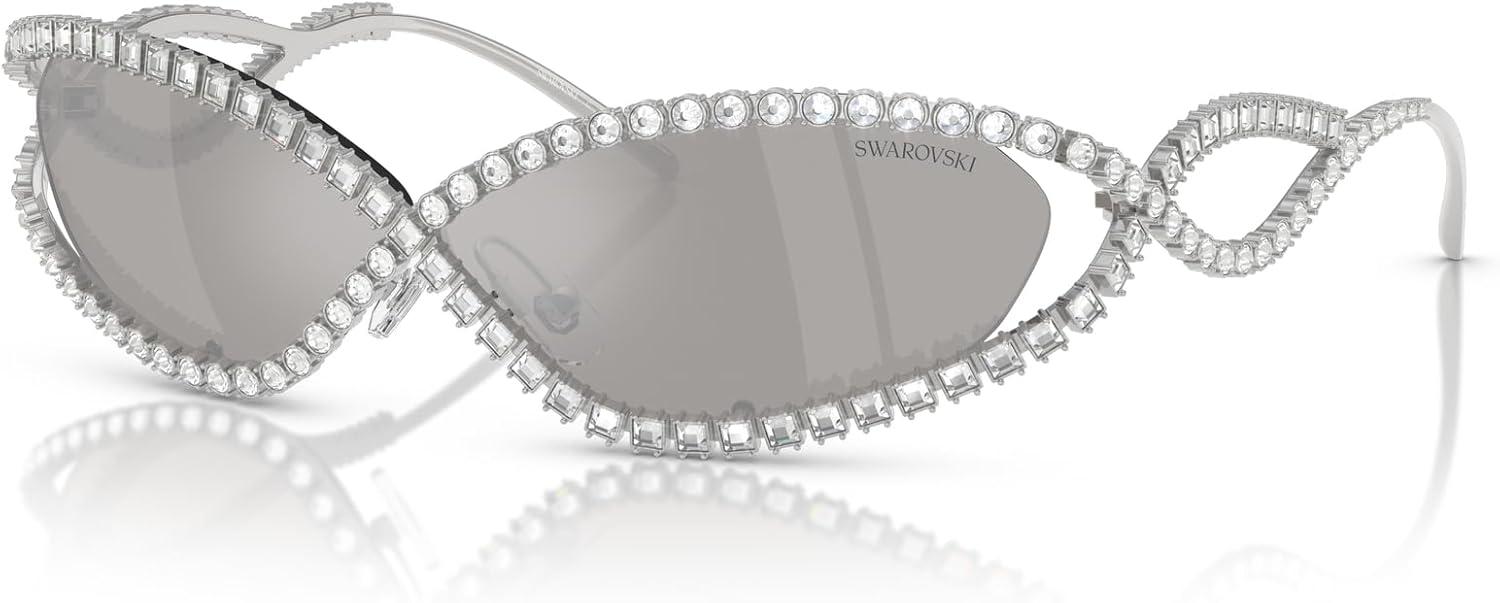 Swarovski womens Sk7024 Oval Sunglasses(Silver/Light Grey Mirrored Silver)
