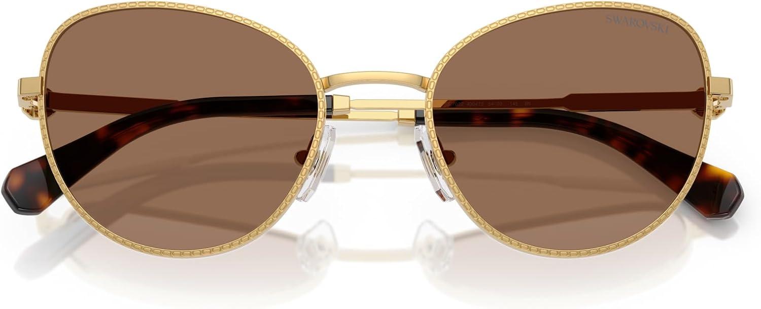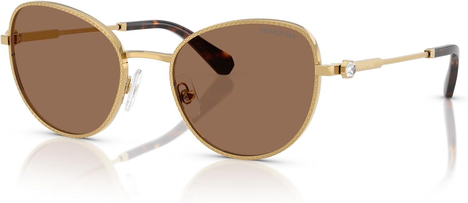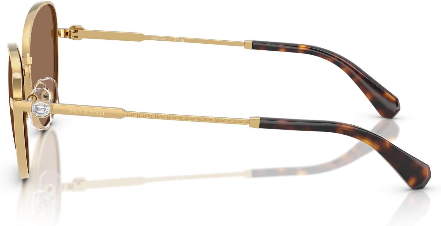 Swarovski womens Sk7032 Round Sunglasses(Gold/Dark Brown)