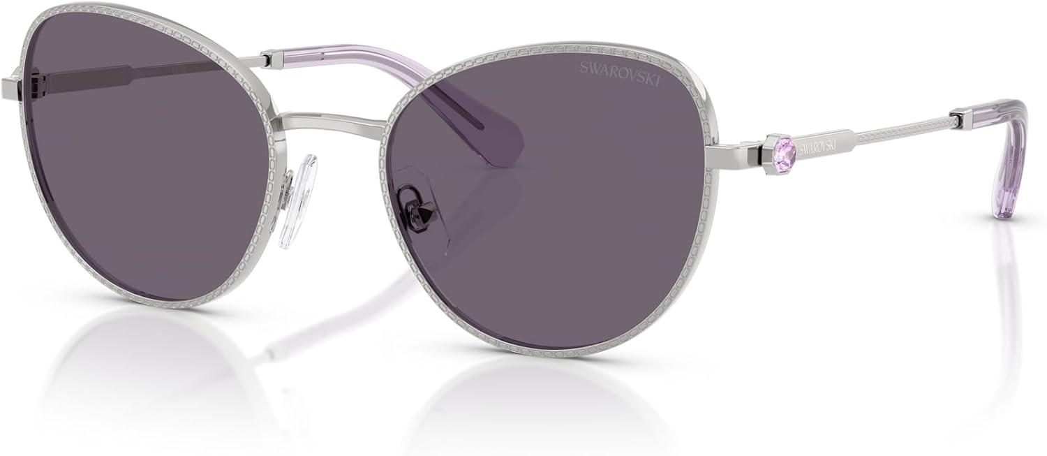 Swarovski womens Sk7032 Round Sunglasses(Silver/Violet)