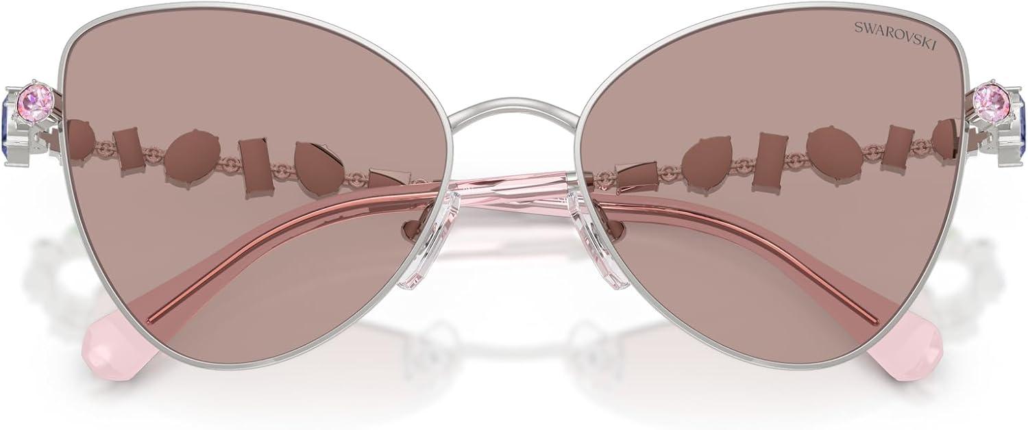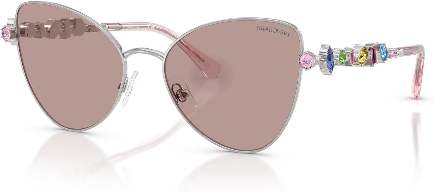 Swarovski womens Sk7034 Butterfly Sunglasses(Silver/Light Purple Brown)