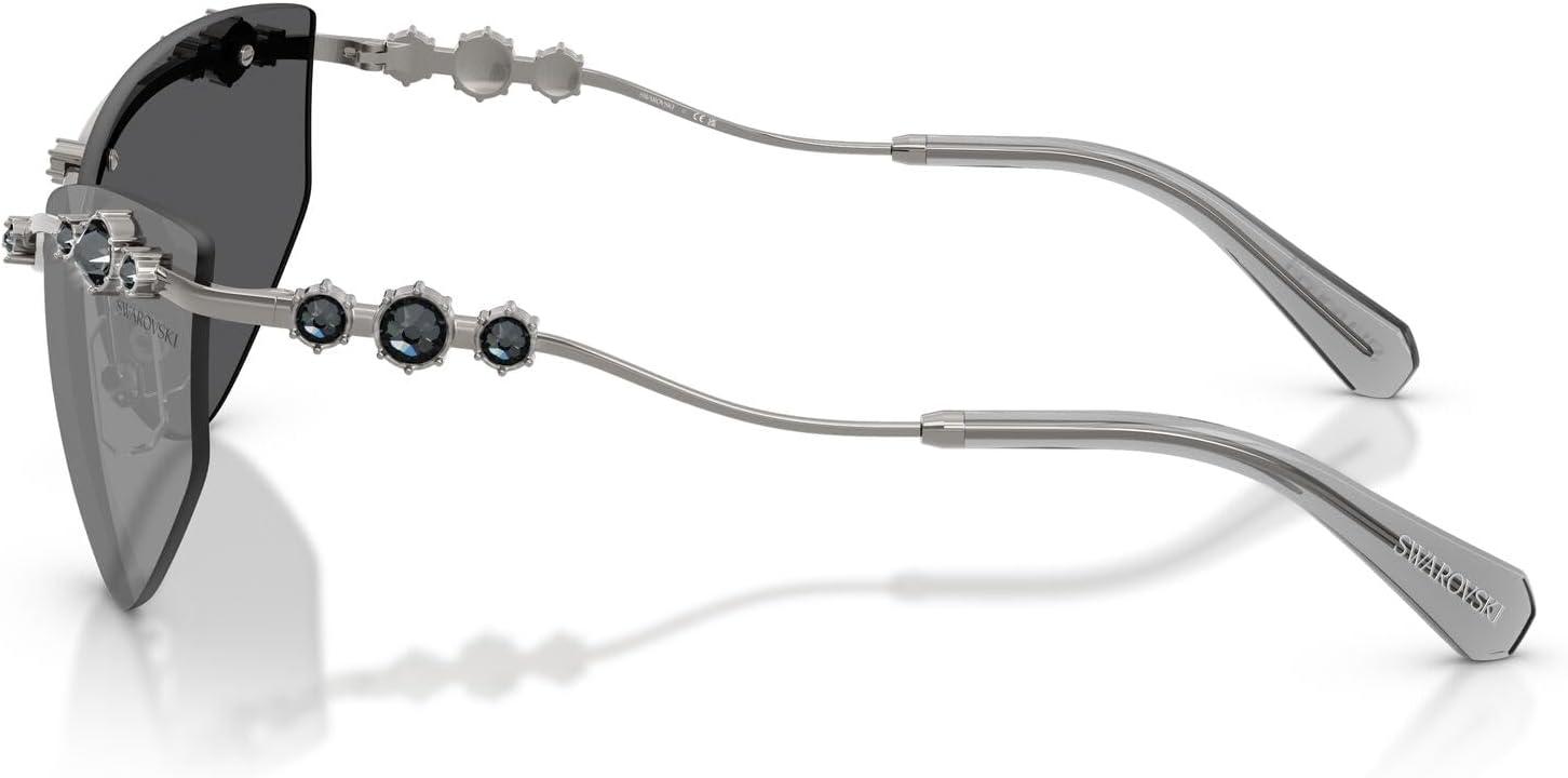 The Swarovski SK7039 sunglasses feature a sleek rimless cat eye silhouette from the celestial Constella collection. Celebrating Swarovski's artistry and craftsmanship, this captivating design is inspired by Swarovski jewelry, embodying the wonder of the galaxy with a rimless model featuring a sleek, wrap-around shape. A metal bar adorned with crystals runs along the front and continues on the temple, adding a refined and luminous detail that creates distinctive luxury appeal. Available in a sophisticated array of rimless cat eye frames in metallic finishes with coordinating lens options, including mirror lens technology that adds a bold pop of color and modern edge for striking style statements in any setting. The cat eye shape provides dramatic feminine sophistication and contemporary proportions while the crystal-adorned construction ensures exceptional glamour and all-day wearability with distinctive luxury. Perfect for the fashion-forward individual who values celestial-inspired design and cutting-edge elegance, these sunglasses represent the intersection of cosmic beauty and avant-garde aesthetics with premium materials. These versatile frames transition effortlessly from social occasions to everyday moments. All lenses offer complete UV protection to shield your eyes from harmful rays during daily wear. Available with mirror lens options for enhanced style impact and dynamic visual appeal. Each pair comes with a protective case and cleaning cloth to preserve your frames and maintain their pristine appearance. Swarovski sunglasses sold by authorized sellers, like Amazon.com, are eligible for all manufacturer warranties and guarantees.