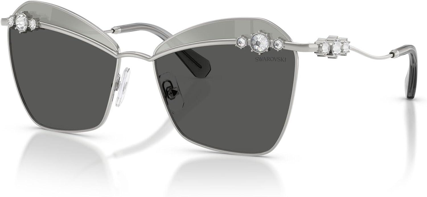 Swarovski Women’s Sk7040 Sunglasses(Silver/Grey Tampo Swarovski Silver)