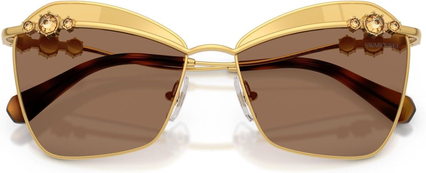 Swarovski Women’s Sk7040 Sunglasses(Yellow Gold/Brown Tampo Swarovski Gold)