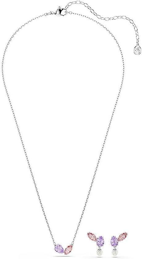 Swarovski x Ariana Grande Necklace & Earring Sets, Rhodium Finish, Official Ariana Grande Jewelry Collection(Multicolor Set)