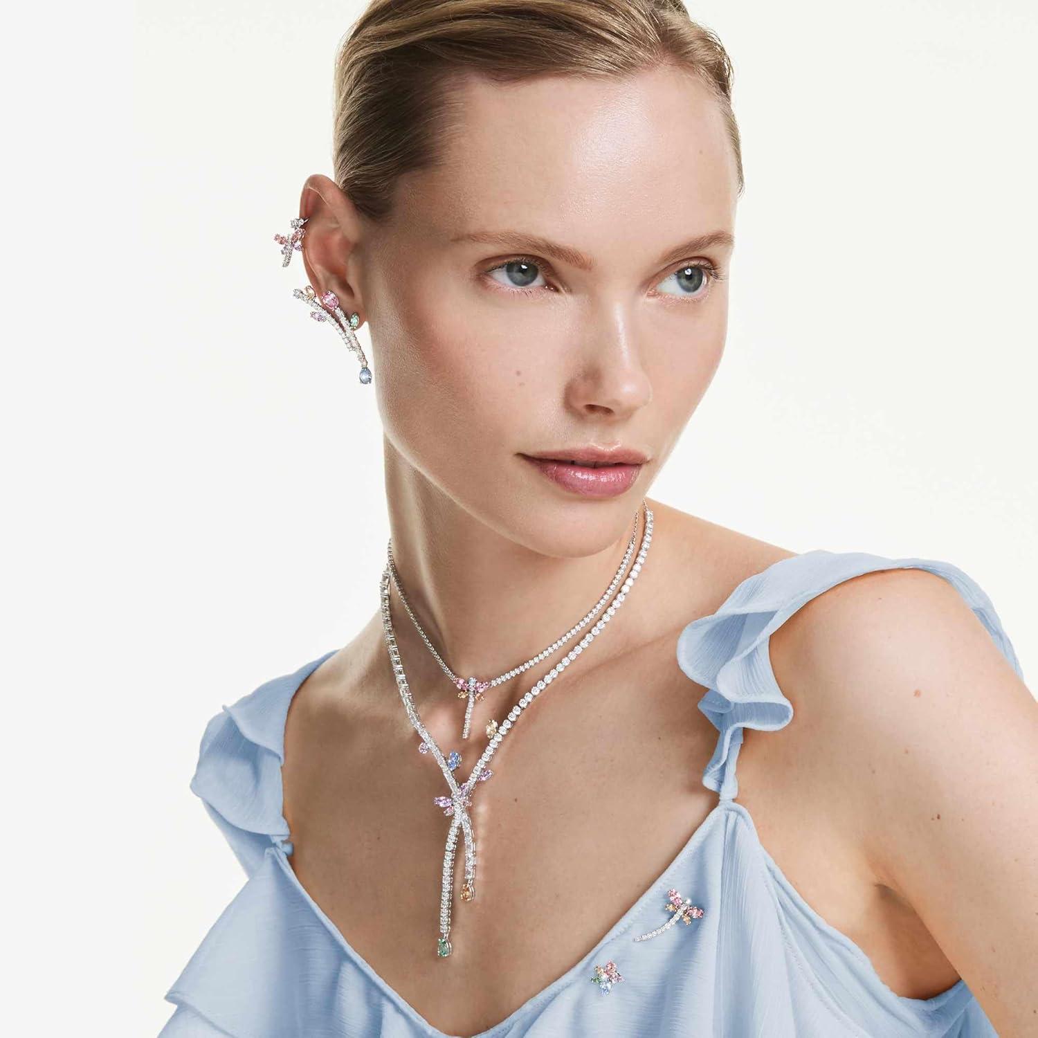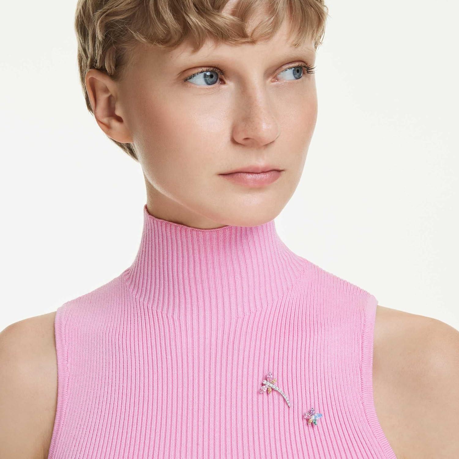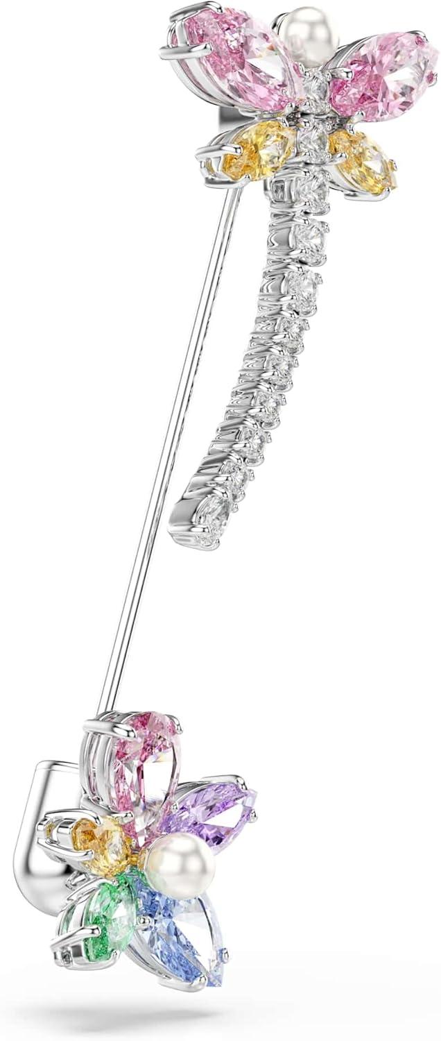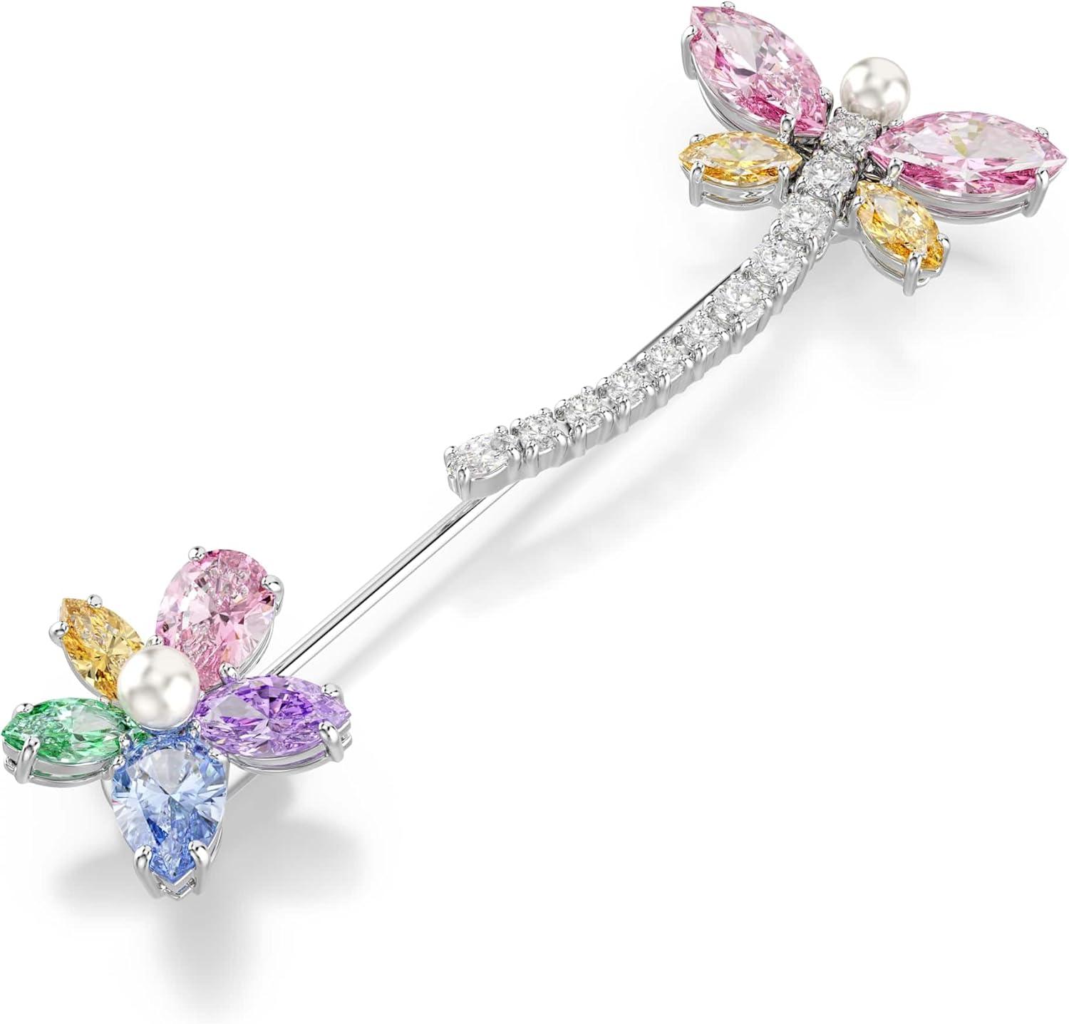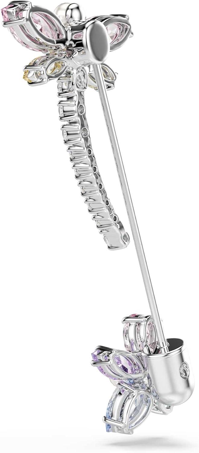 Swarovski x Ariana Grande Official Dragonfly Motif Jewelry Collection, Brooch, Pendant Necklace, Earrings, Mixed Cut Multicolored Stones, Rhodium Finish(Multicolored Brooch)