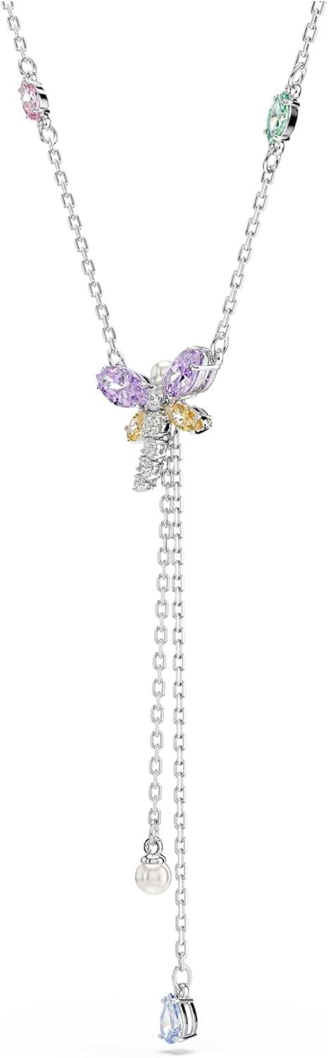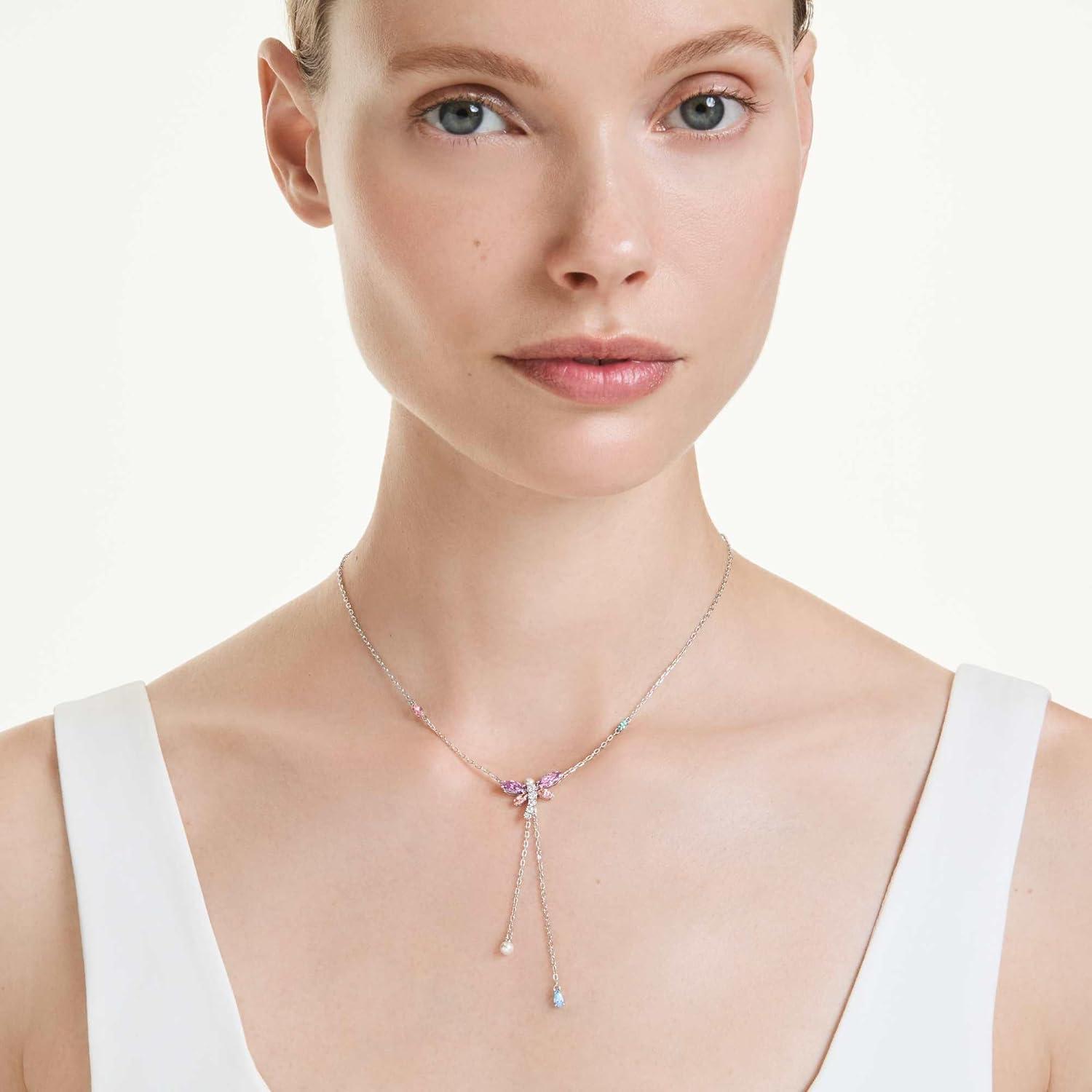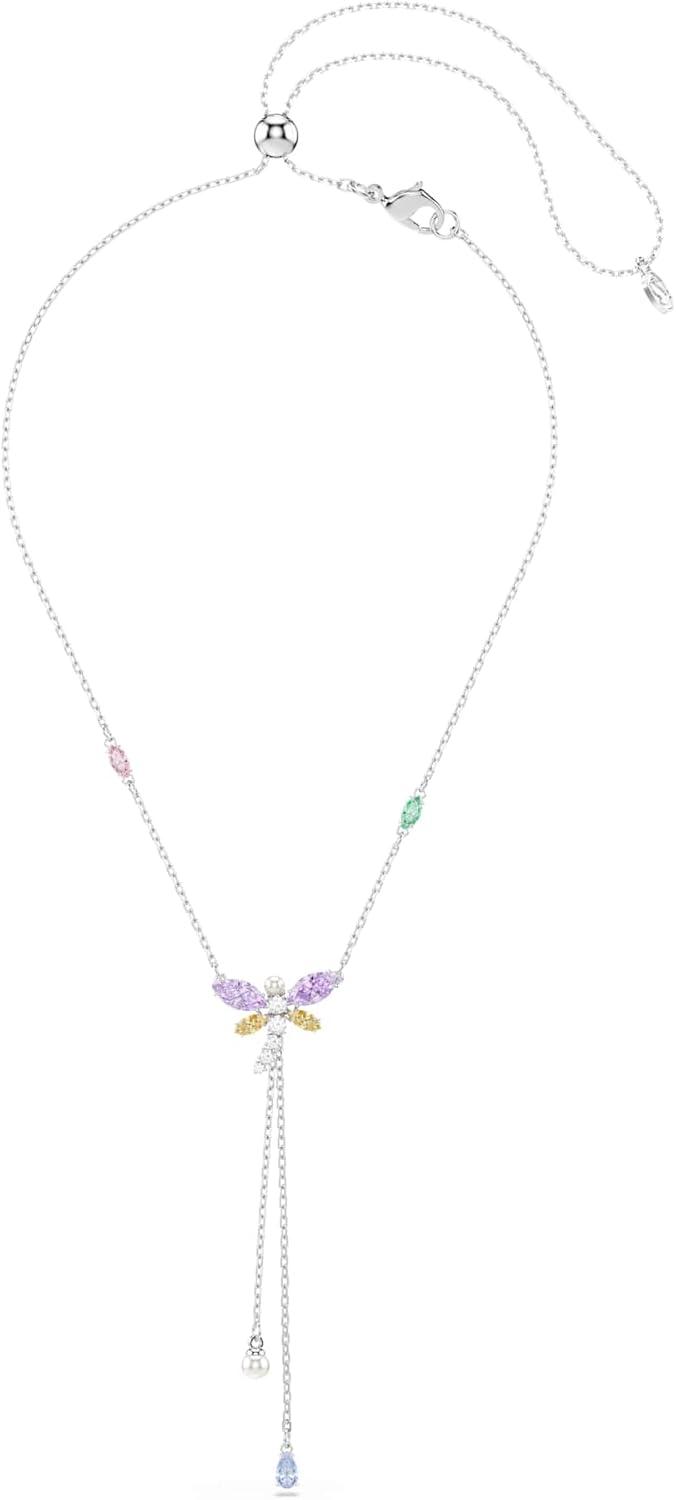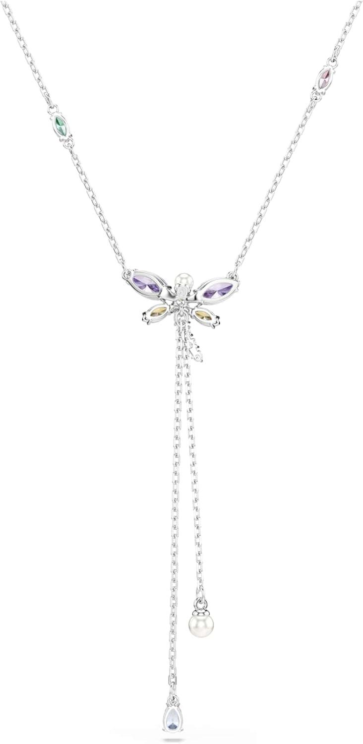 Swarovski x Ariana Grande Official Dragonfly Motif Jewelry Collection, Brooch, Pendant Necklace, Earrings, Mixed Cut Multicolored Stones, Rhodium Finish(Multicolored Y Necklace)