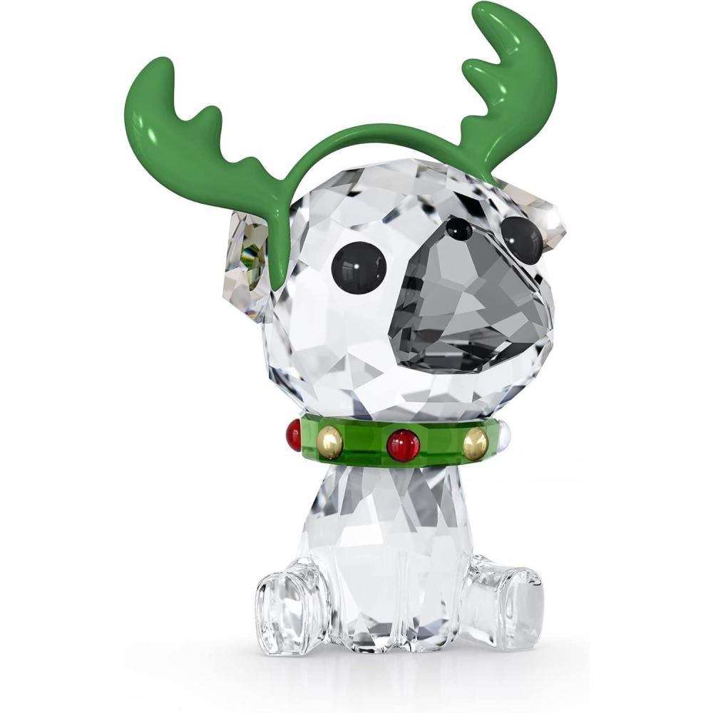 Charming elegance: An adorable figurine of a puppy dog wearing antlers, featuring 313 facets of white crystal that shine with joyful charm, this decoration is a playful way to get festive
